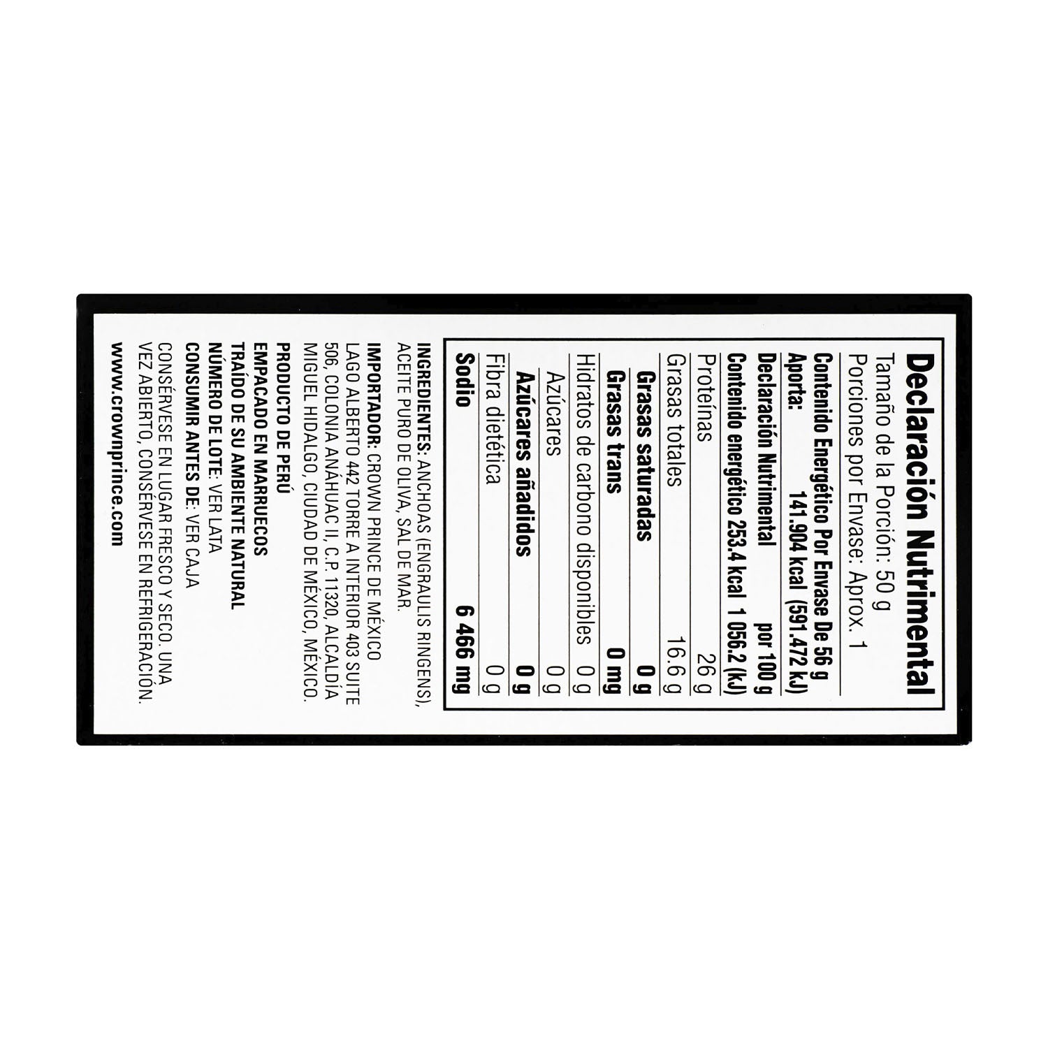 Crown Prince - Filete de Anchoas en Aceite Puro Oliva 56 gr - Estados Unidos