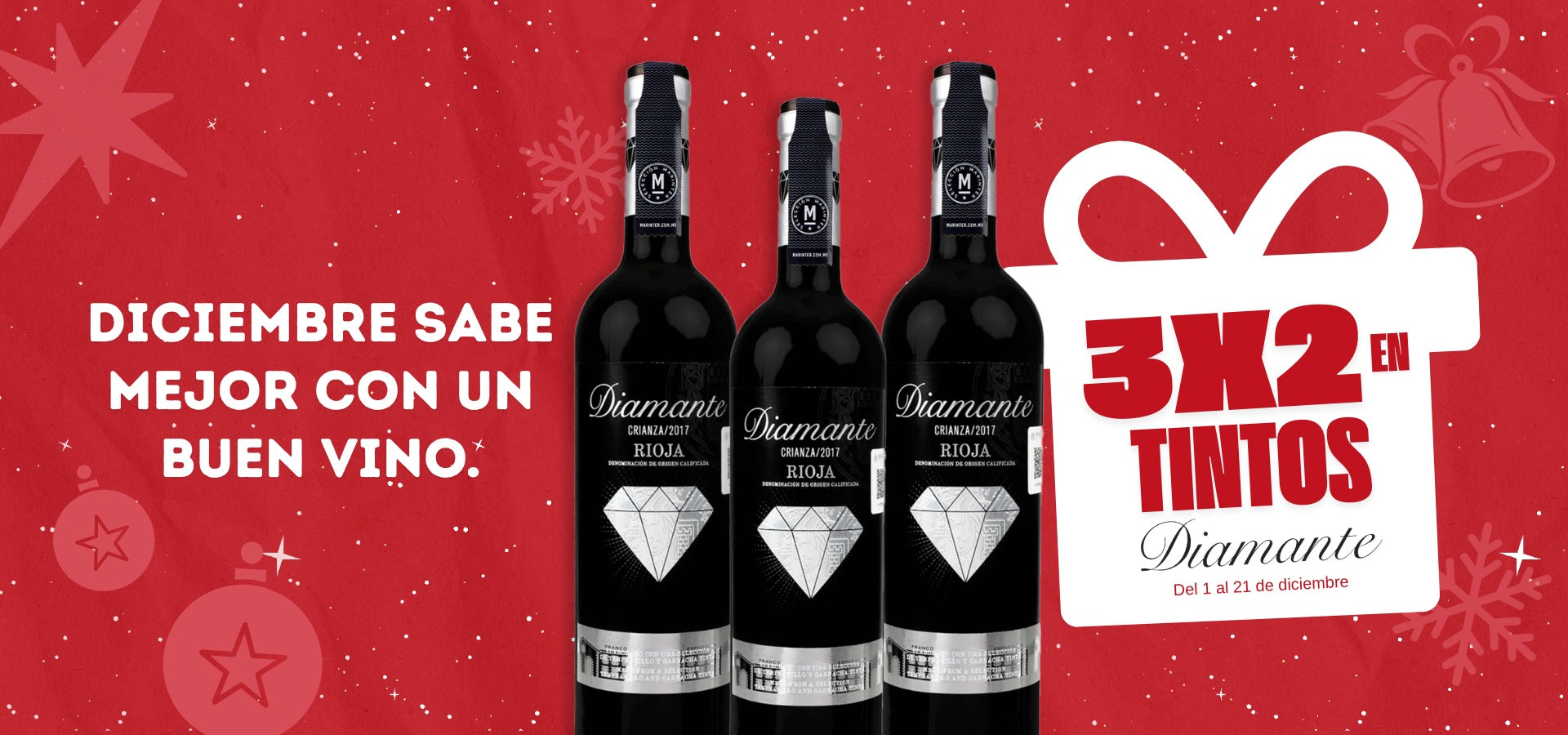 Promo 3x2 - Vino Tinto - Diamante Crianza de 750 ml - España